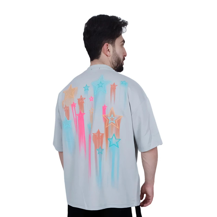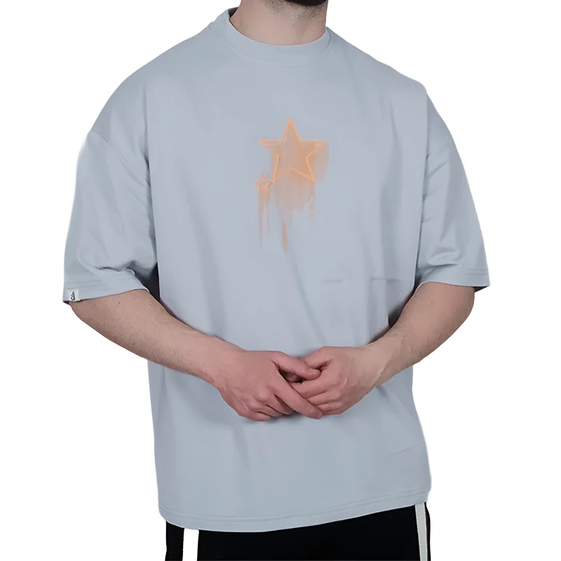تیشرت آستین کوتاه طوسی طرح ستاره