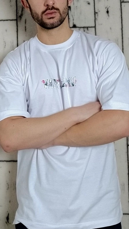 تیشرت آستین کوتاه مردانه سفید نخ پنبه طرح گل