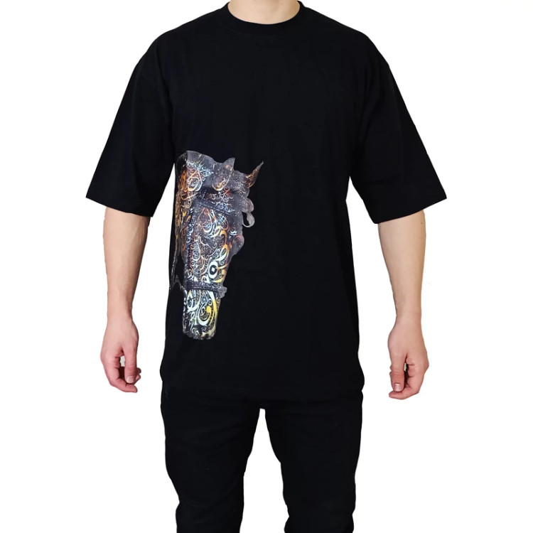 تیشرت آستین کوتاه مردانه مشکی نخ پنبه طرح اسب نستعلیق