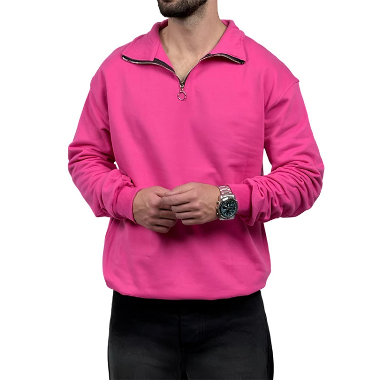 دورس مردانه ساده صورتی مدل یقه نیم زیپ