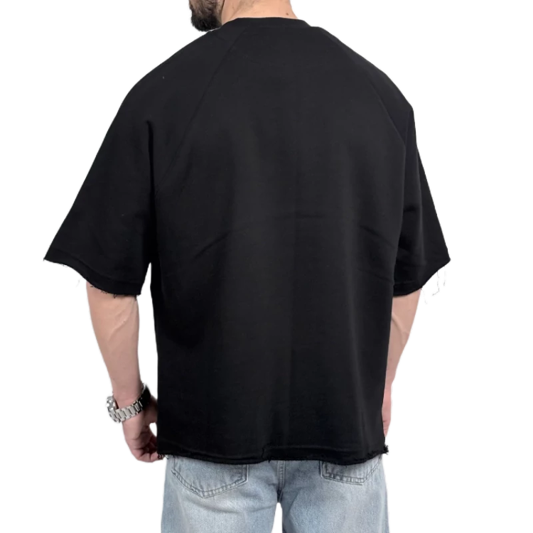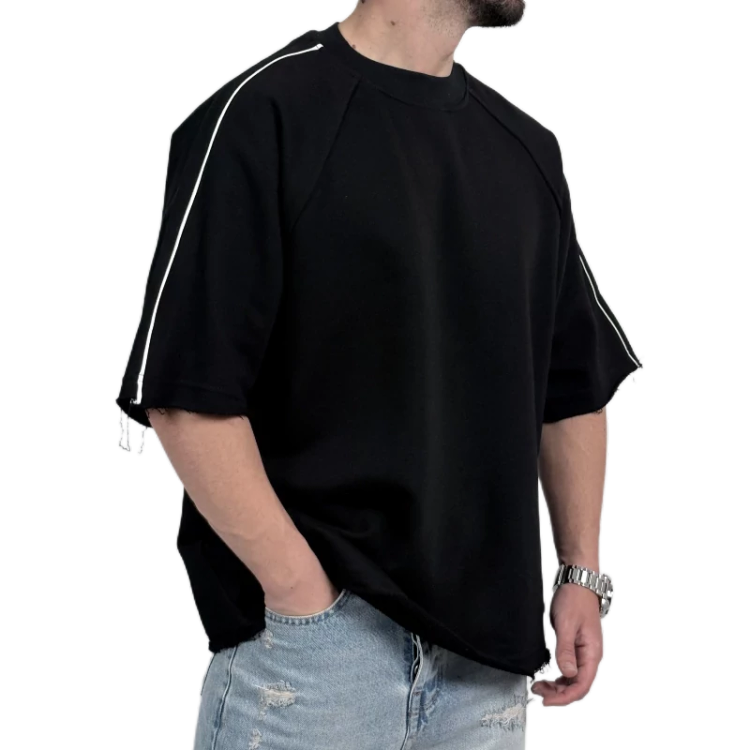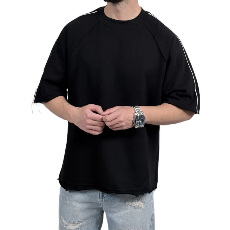 تیشرت ساده باکسی مردانه مشکی مدل نواری