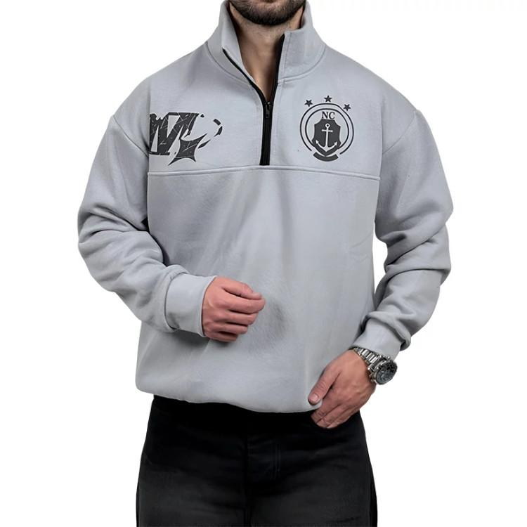 دورس مردانه یقه نیم زیپ طوسی طرح NC