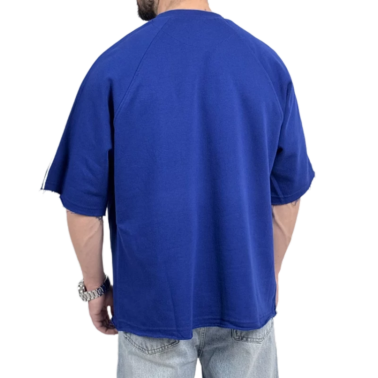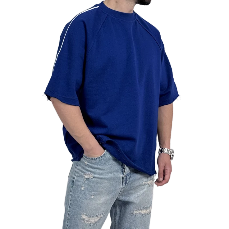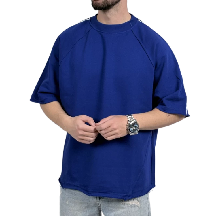 تیشرت ساده باکسی مردانه آبی مدل نواری