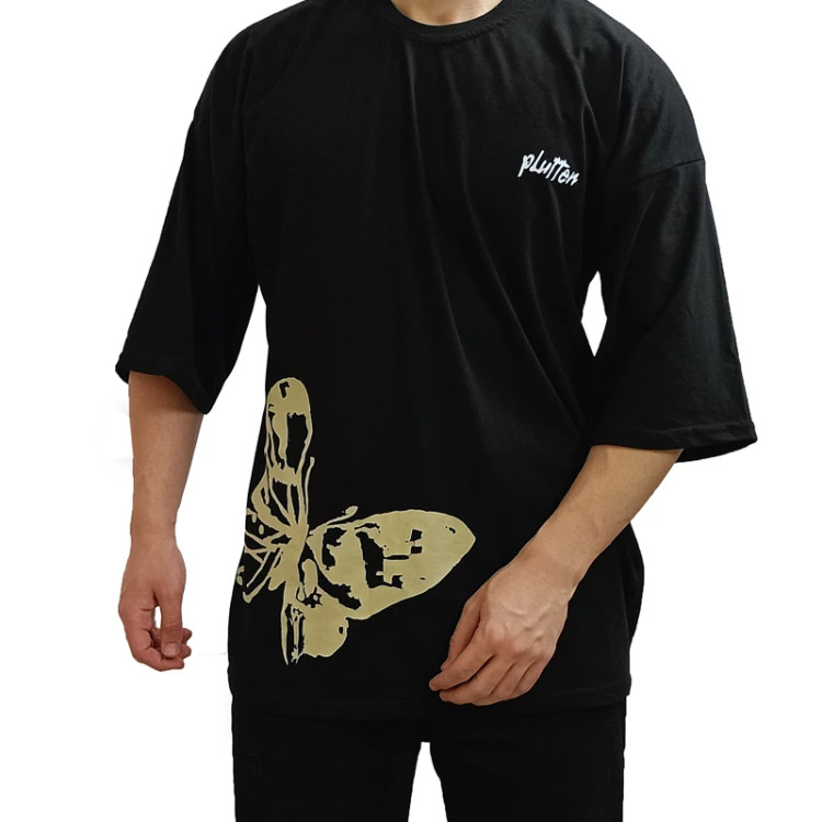 تیشرت آستین کوتاه مردانه مشکی طرح پروانه قواره آزاد