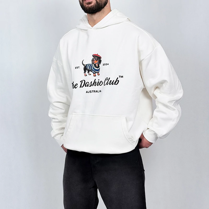 هودی مردانه سفید پنبه سه نخ طرح dog